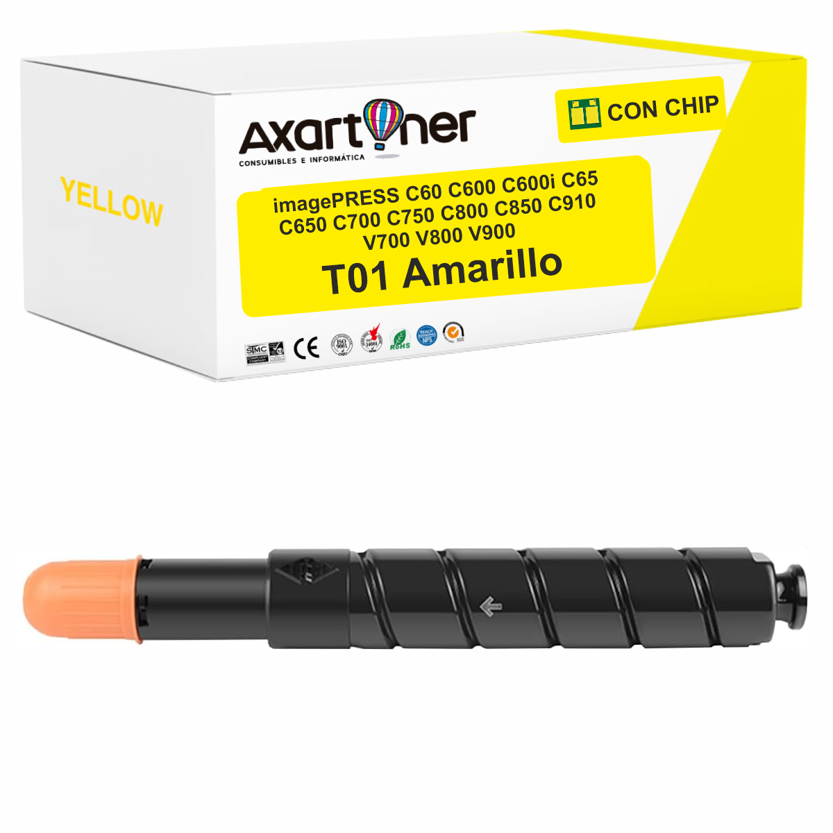 Compatible Canon T01 / 8069B001 Amarillo Cartucho de Toner para imagePress C60 C600 C600i C65 C650 C700 C750 C800 C850 C910 V700 V800 V900