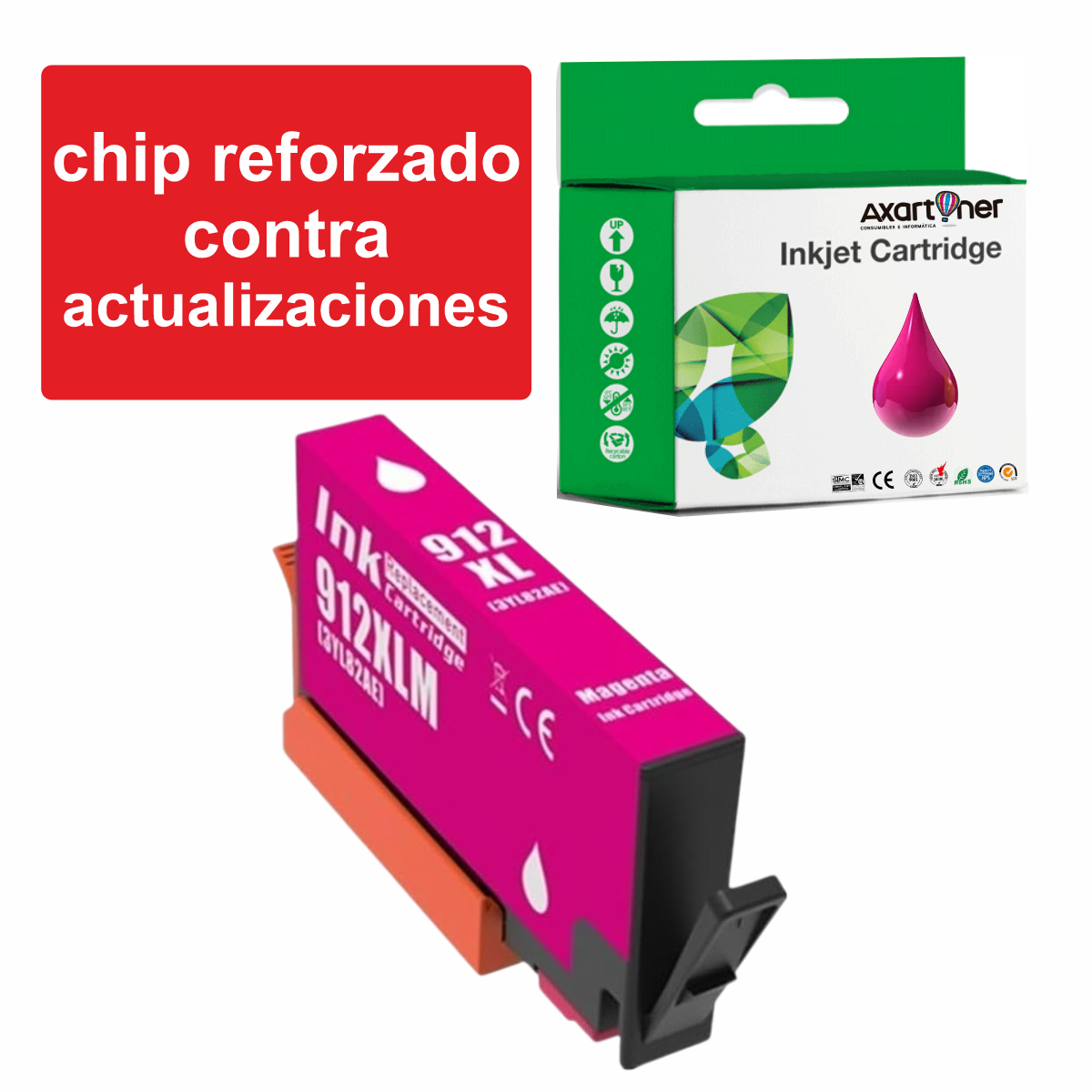 Compatible HP 912XL Magenta - Chip Actualizado Funciona en Impresoras que terminan en E - Cartucho de Tinta 3YL82AE / 3YL78AE