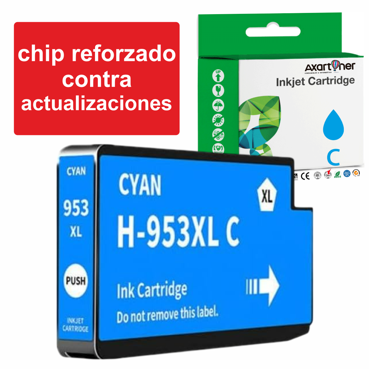 Compatible HP 953XL Cyan - Chip Actualizado reforzado contra actualizaciones - Cartuchos de Tinta F6U16AE / F6U12AE