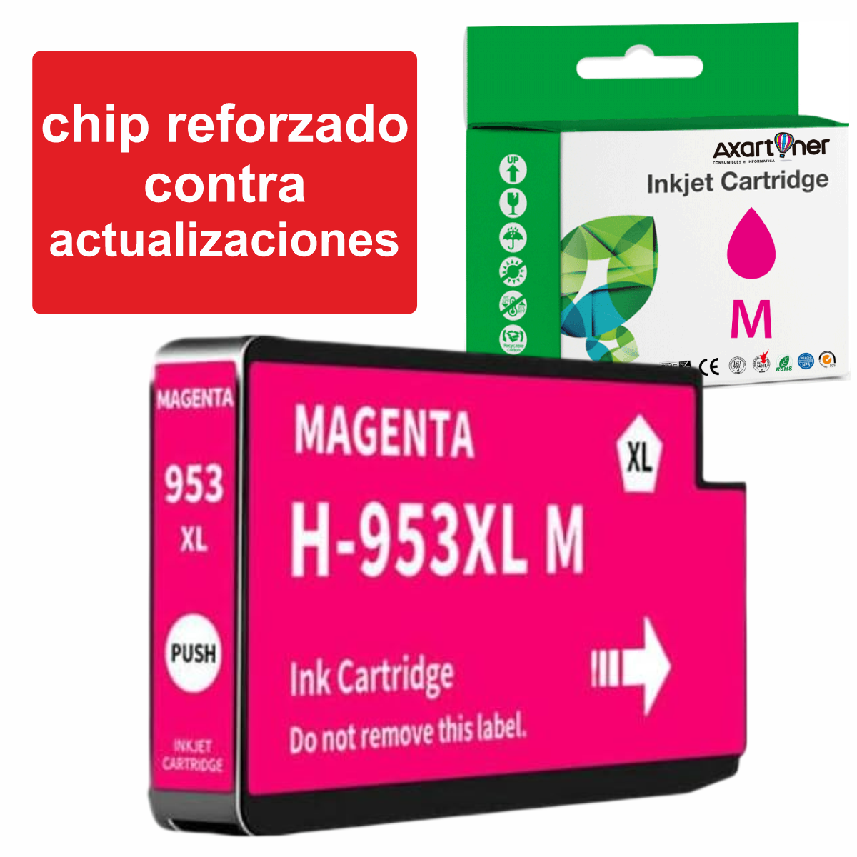 Compatible HP 953XL Magenta - Chip Actualizado reforzado contra actualizaciones - Cartucho de Tinta F6U17AE / F6U13AE