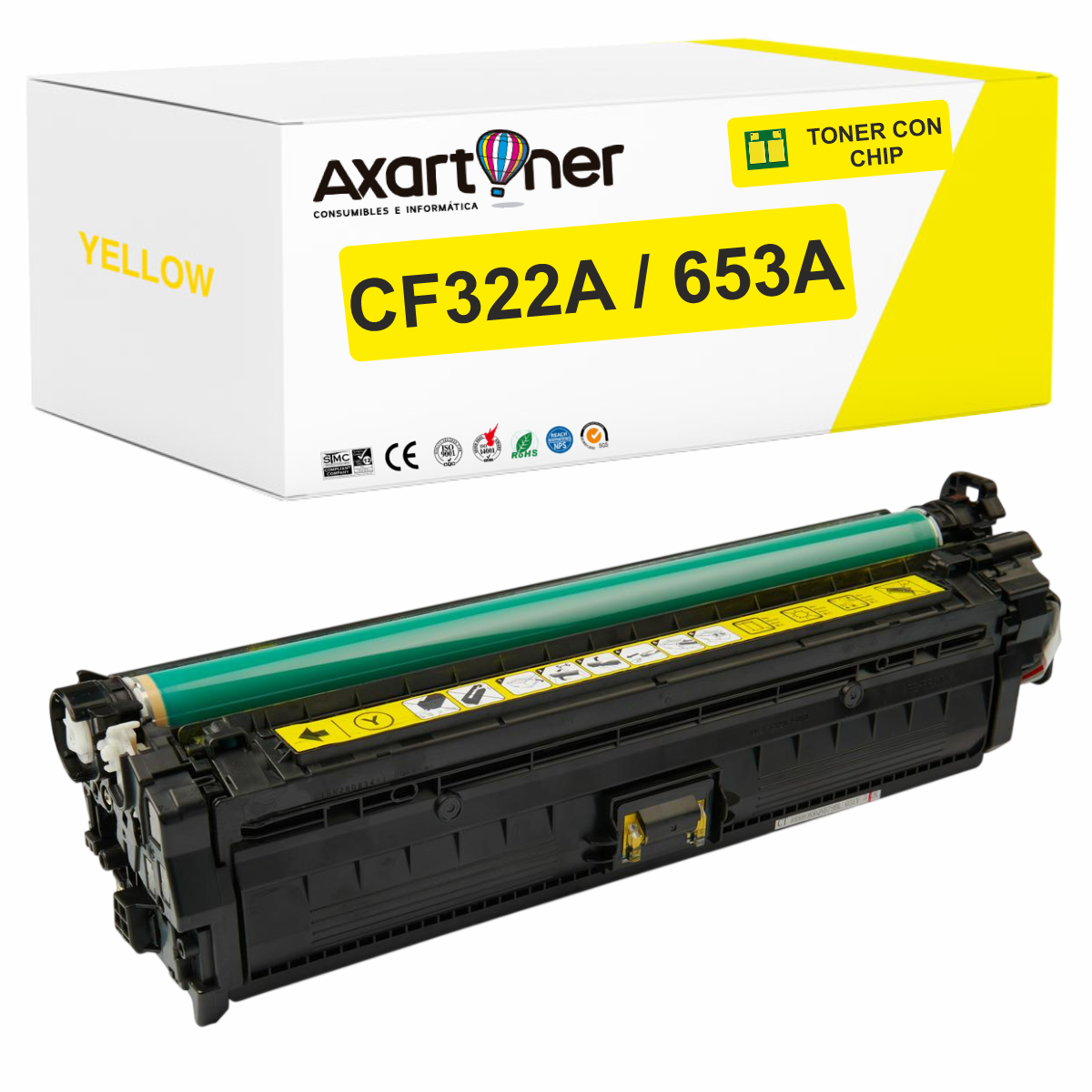 HP CF322A AMARILLO CARTUCHO DE TONER COMPATIBLE Nº 653A PARA HP COLOR LASERJET Enterprise Flow MFP M680 z / Enterprise MFP M680 / Enterprise MFP M680dn / Enterprise MFP M680f / Enterprise MFP M680 Series