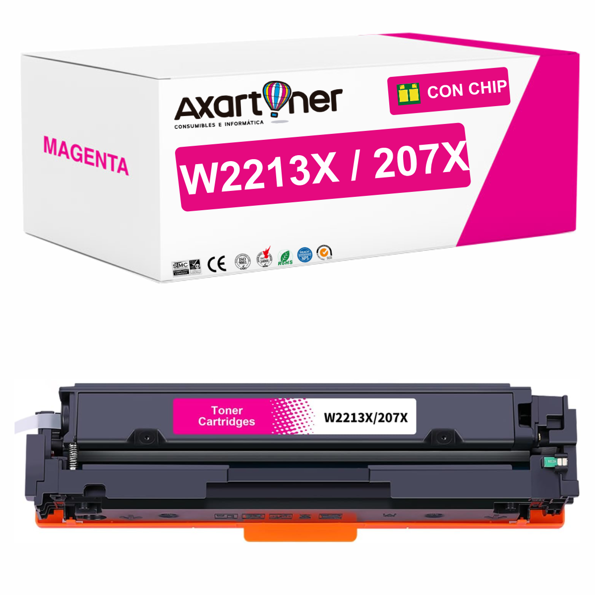 Compatible HP W2213X / W2213A - CON CHIP - Magenta Cartucho de Toner 207X / 207A para HP Color LaserJet Pro M255, MFP M282, MFP M283