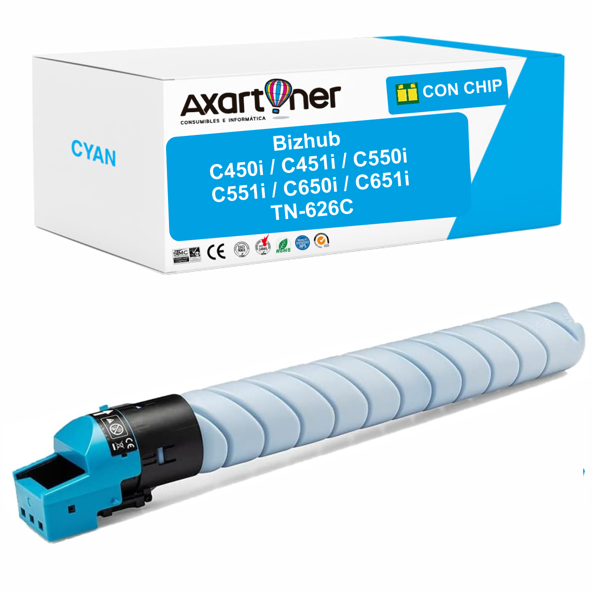 Compatible Konica Minolta TN-626C / ACV1450 Cyan Cartucho de Toner para Bizhub C450i C451i C550i C551i C650i C651i