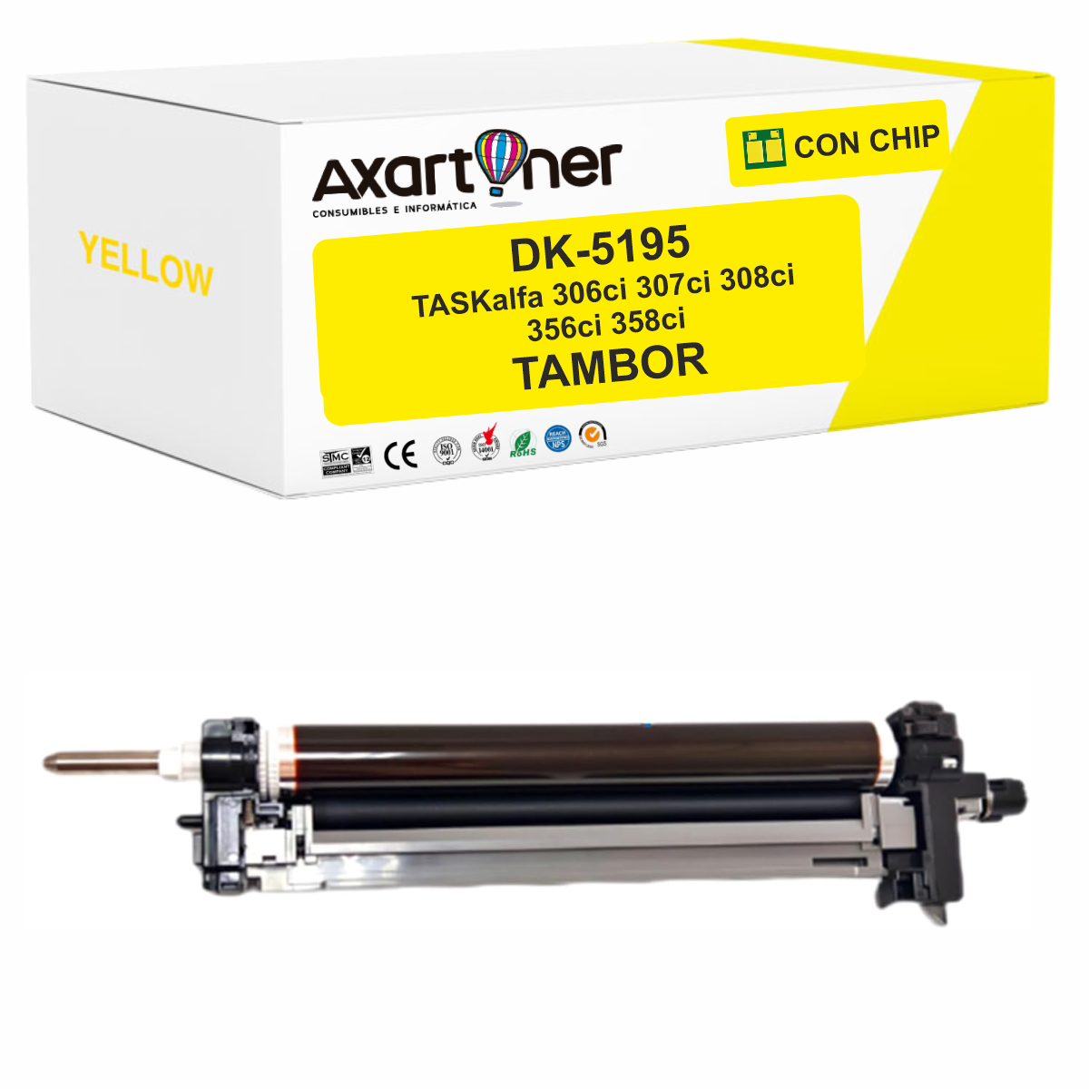 Compatible Kyocera DK5195 Amarillo Tambor de Imagen (Drum) 302R493053 para TasKalfa 306ci 307ci 308ci 356ci 358ci