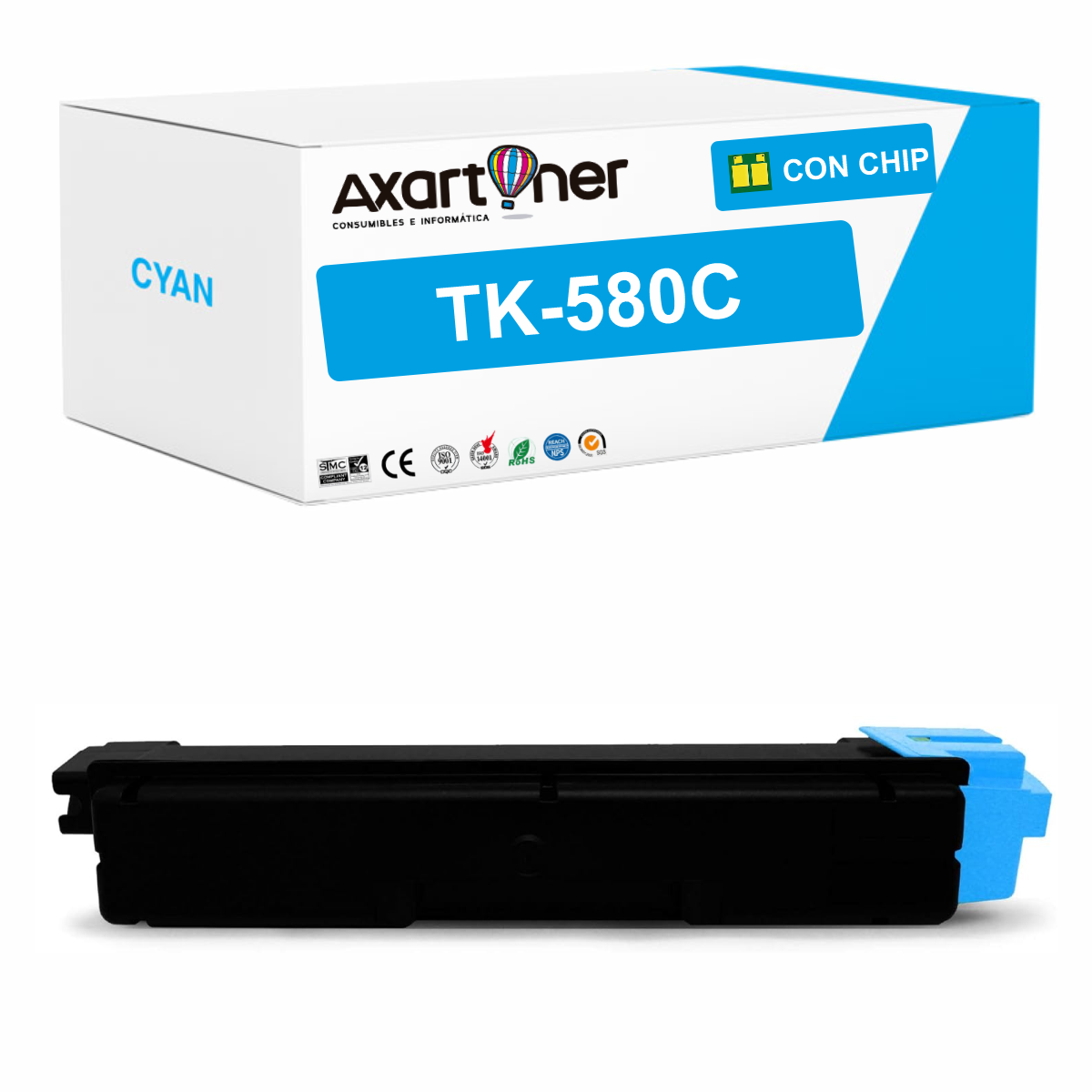 Toner compatible Kyocera TK-580 1T02KTCNL0 de alta calidad, con un rendimiento de 2.800 páginas al 5% de cobertura y válido para las impresoras indicadas.