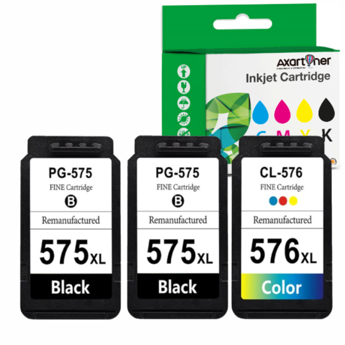 Compatible Pack Canon PG575XL Negro (2 ud) + CL576XL Tricolor (1 ud) Cartuchos de Tinta 5437C001 / 5441C001 para Pixma TR4750i, TR4751i, TR4756i, TR4757i, TS3550i, TS3551i, TS3750i, TS3751i, TS3752i