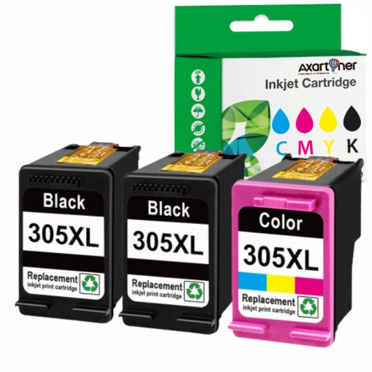 Compatible Pack HP 305XL - chip actualizado - (Negro 2 ud. + Tricolor 1 ud.) Cartuchos de Tinta - Muestra Nivel de Tinta - 3YM62AE / 3YM63AE