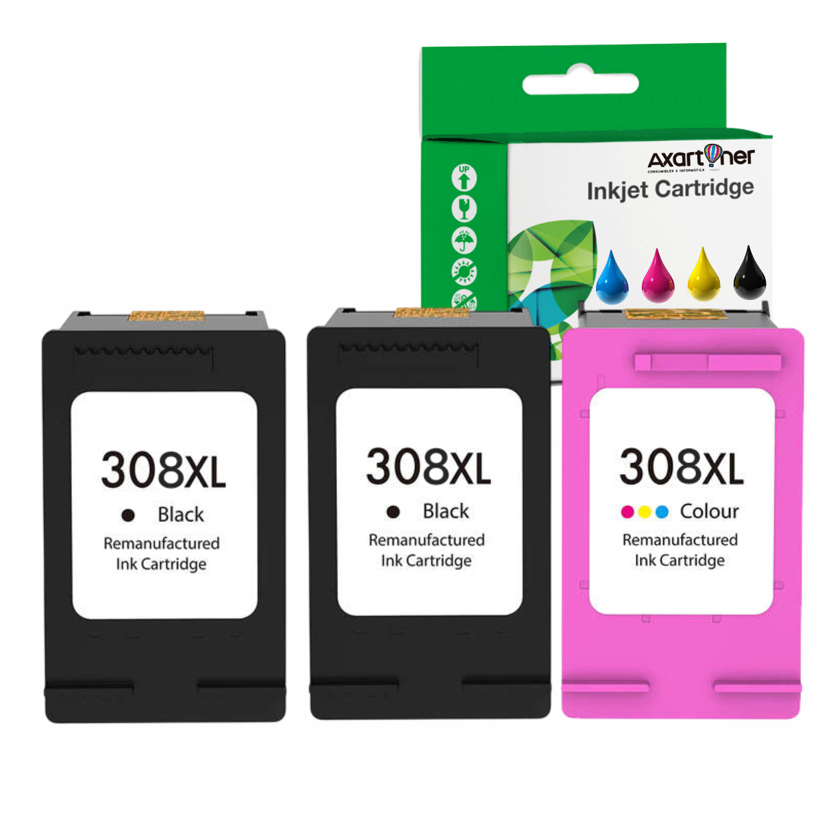 Compatible Pack HP 308XL (Negro 2 ud + Color 1 ud.) Cartuchos de Tinta 7FP22UE / 7FP21UE / 7FP2UE Alta Capacidad / Jumbo