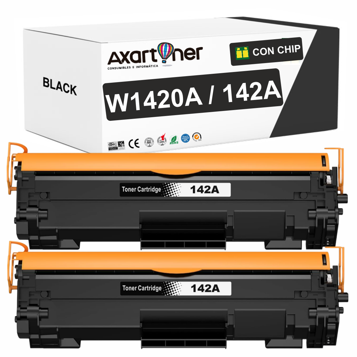 Compatible Pack x2 HP W1420A / 142A - CON CHIP - Negro Cartucho de Toner (NO usar en impresoras terminan en E) para HP LaserJet MFP M140w LaserJet M110w M110 M140 M140w M139w