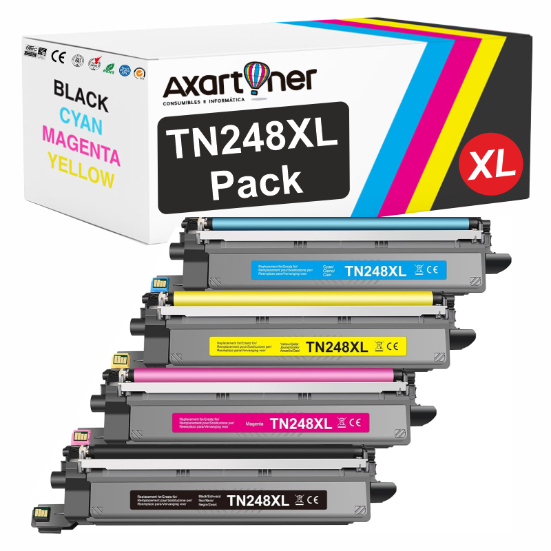 Compatible Pack x4 Brother TN248XL Cartuchos de Toner para Brother DCP L3520, L3560 - HL L3220, L3240, L8230, L8240 - MFC L3740, L3760, L8340, L8390