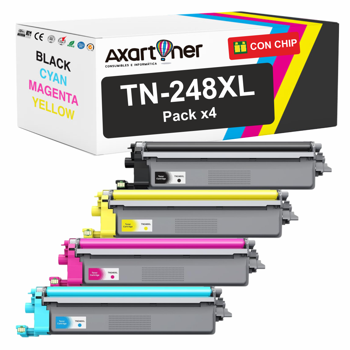 Compatible Pack x4 Brother TN248XL Cartuchos de Toner para Brother DCP L3520, L3560 - HL L3220, L3240, L8230, L8240 - MFC L3740, L3760, L8340, L8390
