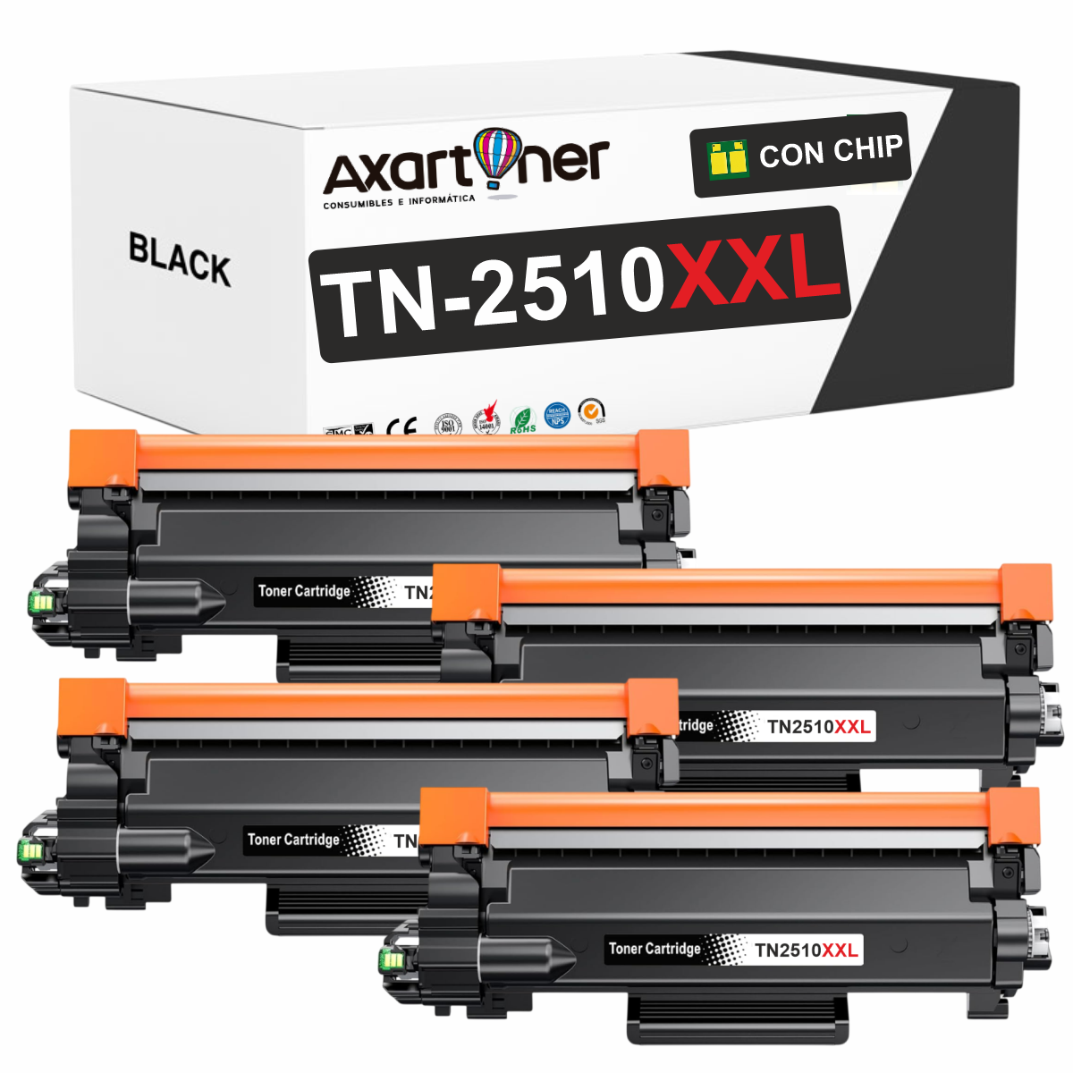 Compatible Pack x4 Brother TN2510XXL Negro Cartucho de Toner para Brother DCP-L2620 / DCP-L2627 / DCP-L2660 / DCP-L2665 / HL-L2400 / HL-L2445 / HL-L2447 / MFC-L2800 / MFC-L2827 / MFC-L2835 / MFC-L2860 / MFC-L2960 / MFC-L2980