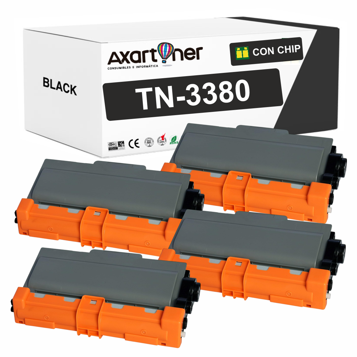Compatible Pack x4 Brother TN3380 Negro Cartuchos de Toner TN-3380 TN-3300