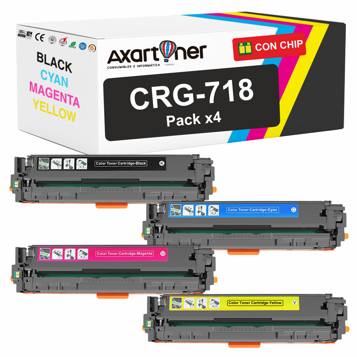 CANON 718 CARTUCHOS DE TONER COMPATIBLE PACK 4 COLORES