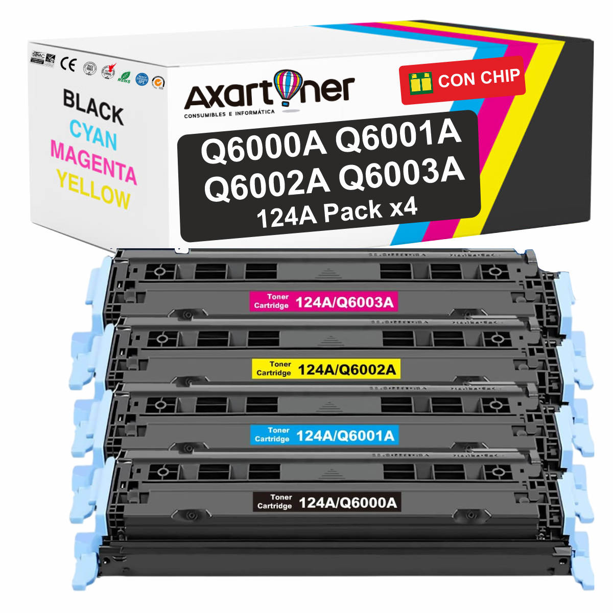 Compatible Pack x4 HP Q6000A / Q6001A / Q6002A / Q6003A / 124A Cartuchos de Toner para HP Color LaserJet 1600, 2600n, 2605, 2605dn, 2605dtn, CM1015, CM1015 MFP, CM1017, CM1017 MFP