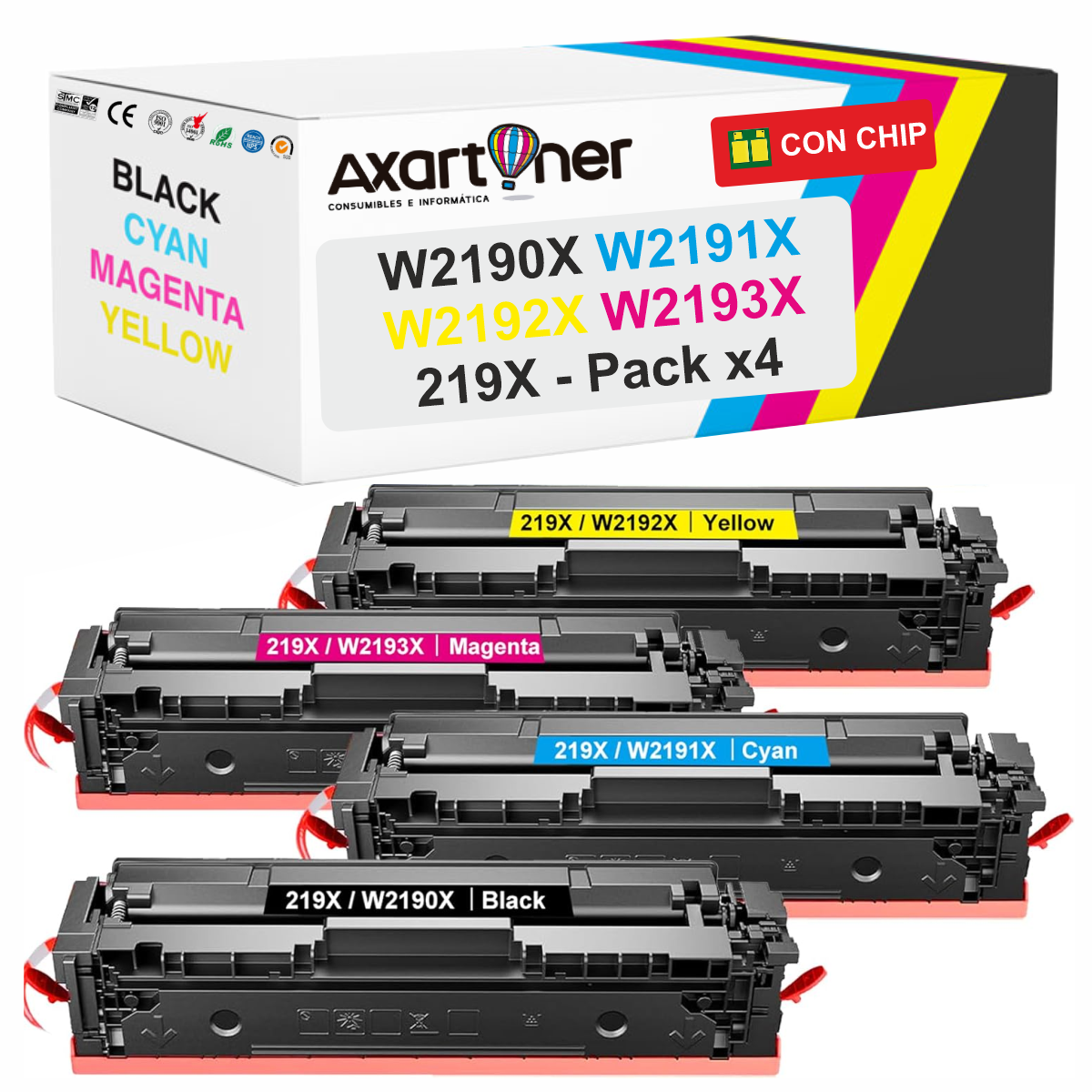 Compatible Pack x4 HP W2190X / W2191X / W2192X / W2193X / 219X - CON CHIP - Cartuchos de Toner para HP Color LaserJet Pro 3202 / MFP 3302