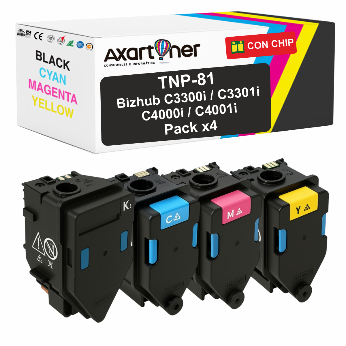 Compatible Pack x4 Konica Minolta Bizhub C3300i / C3301i / C4000i / C4001i Cartuchos de Toner TNP81K - TNP81C - TNP81M - TNP81Y