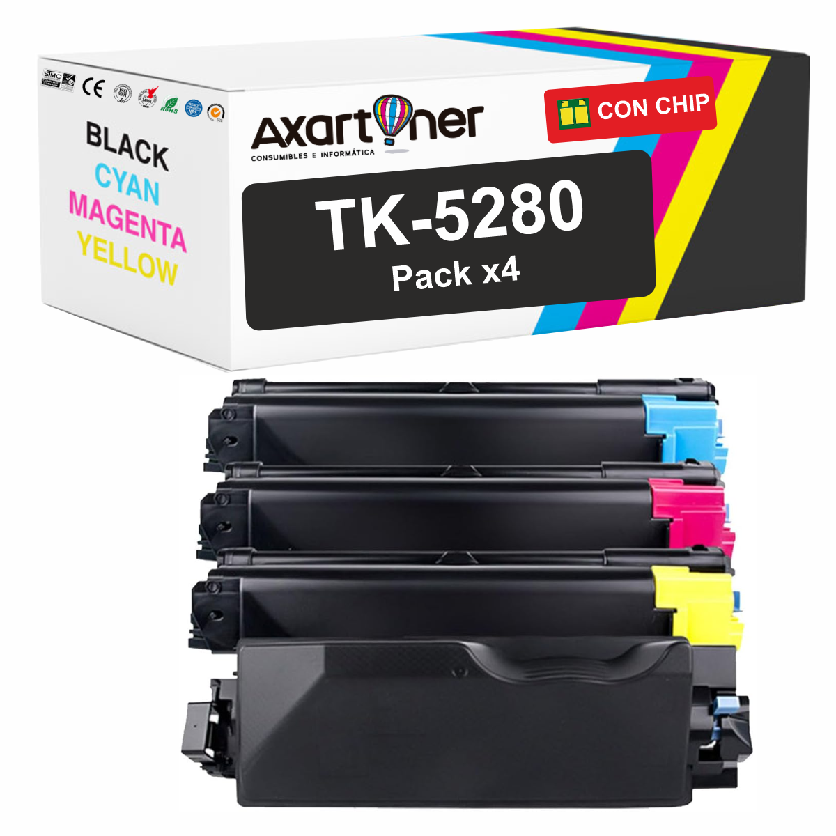 Compatible Pack x4 Kyocera TK5280 Cartuchos de Toner para Kyocera Ecosys M6235cidn M6635cidn P6235cdn