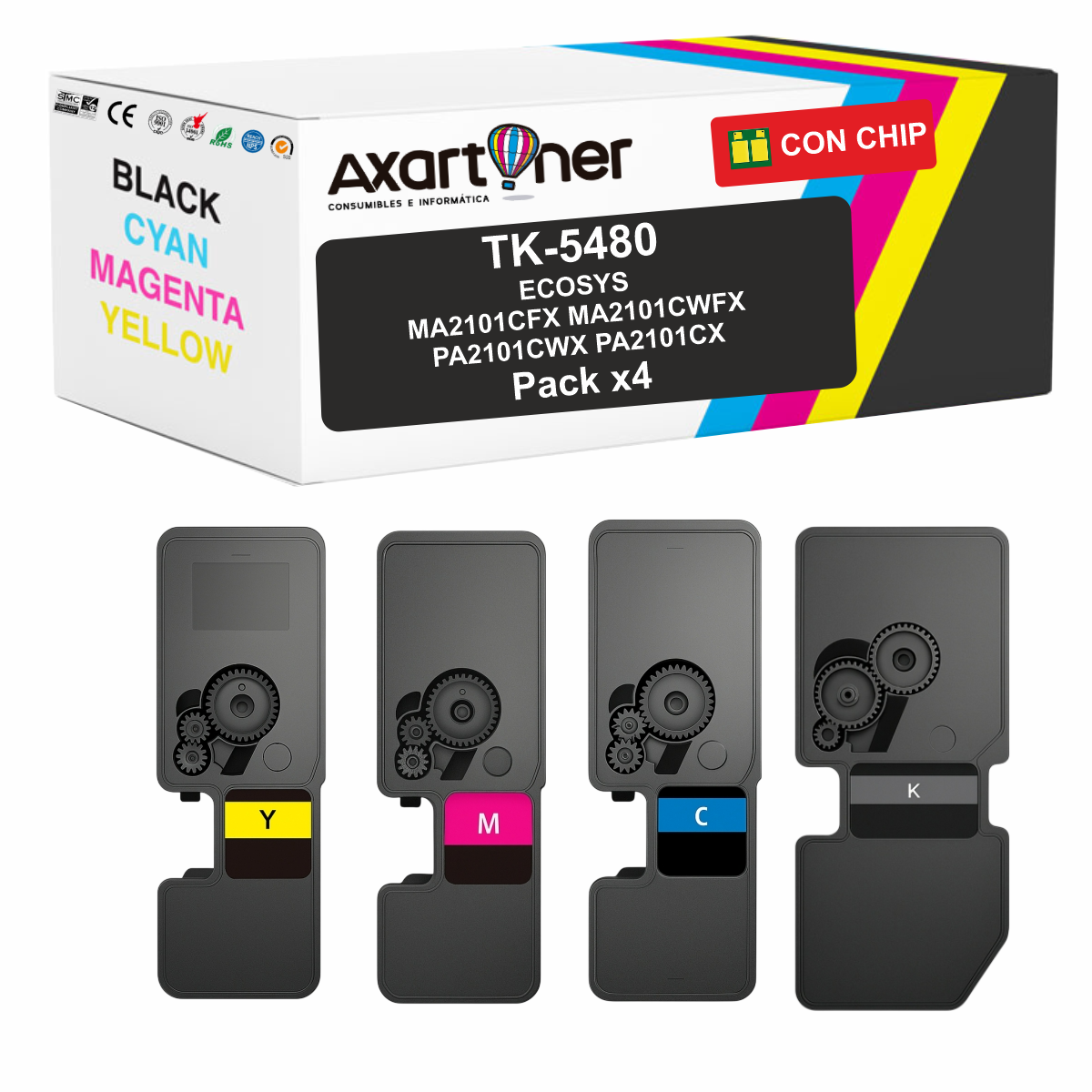 Compatible Pack x4 Kyocera TK5480 Cartuchos de Toner TK-5480 para Kyocera ECOSYS MA2101cfx / MA2101cwfx / PA2101cwx / PA2101cx