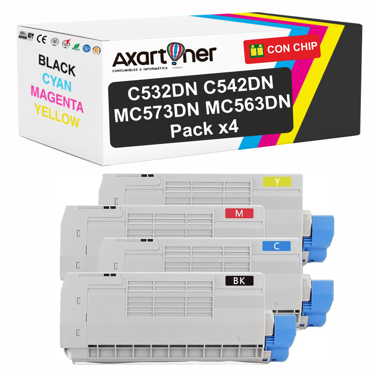 Compatible Pack x4 OKI C532dn C542dn MC563dn MC573dn Cartuchos de Toner