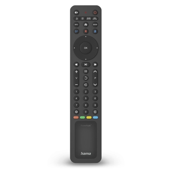 Hama Mando a Distancia para TV - Universal - Alcance 10m - 43 Botones - Acceso Directo a Plataformas de Streaming - Permite 4 Dispositivos Simultaneos - 20.2x4.7x2.1cm - Color Negro
