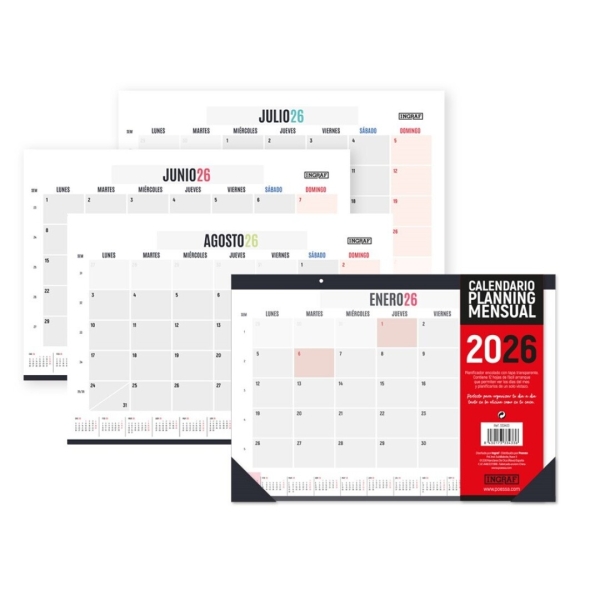 Ingraf Planificador de Mesa Mensual - Encolado con Tapa de Polipropileno - 12 Hojas de Faciles de Arrancar