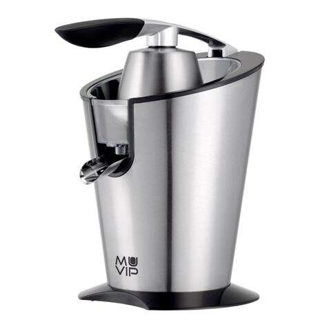 Muvip Exprimidor Electrico Inox 600W - Cuerpo, Mango y Filtro de Acero Inoxidable - Sistema Antigoteo - 2 Tamaños de Conos